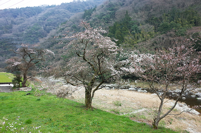 翌週、僕が釣りに行くが山菜採りに来るか? とKくんに聞くと行くという。僕が釣りをしている間に山菜を探すので、時間を気にせず釣りをしてくださいとKくんは言った。車は僕が出すし迎えに行くので、それでバランスは取れるだろう。こうしてこの日は釣りと山菜採りのプランになった。 ようやく気温も上がり始め、今回は今年最初の本流を攻めようと思っていた。これからひと月くらいが本流の最盛期になる。同時に山菜もフキノトウからほかの山菜に移行する時期だ。二足の草鞋の片方をKくんに履いてもらおう。 昼近くになったので昼飯を食べに川沿いのいつもの場所に行った。ここは桜の木があるがまだ蕾だった。久々に本流筋を歩くとさすがに体がキツい。ちょうどいい休憩になった。