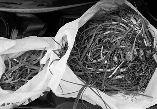 そのあと本命のノビルポイントへ行った。しっかりノビルはあったが、採ろうとすると鱗茎ごと採れず途中でちぎれてしまう。少し別の場所でまたKくんがノビルを見つけた。 Kくんは山菜のハマりっぷりがかなりのもので、野草の図鑑も買っていた。 感覚的にも目的の野草を見つけることに開眼したようで、なかなかの観察力だ。