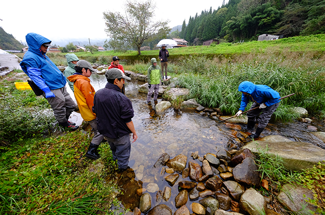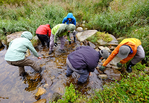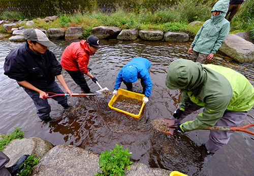 昼食後、中村さん指導のもと、産卵場の造成の実体験を行った。