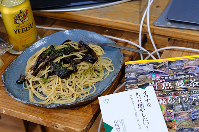 今回の講師お二人の著書をめくりつつ、コウタケスパゲッティを頂きます(*^^*)