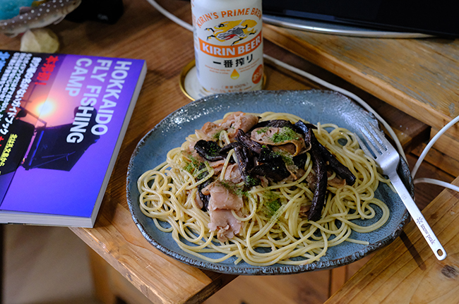 コウタケのスパゲッティはベーコンとコウタケを一緒に炒め、そこにパスタを投入。それぞれの旨みが混ざり合ってうまい。 炊き込みご飯はコウタケと油揚げと鶏肉を入れ、具沢山でこれも旨みが浸透し極上。メスティンだと失敗がない。 天日干しのコウタケはまだ少し残っている。どうやって食べよう。 このあと雪が降る前の最後の収穫が待っている。冬もすぐそこまできている。 先週のイベントの帰りに道の駅に寄ると、コウタケが売られていた。少し老菌気味だったが天日干しすればイケそうなやつだった。これはひょっとして前回のキノコ採りの時に出会ったプロっぽいキノコ採りの人が卸したものかもしれない。当然良いやつから売れていったのだろう。残っていたものよりは僕たちが採ったコウタケの方がずっと良い状態のものだった。僕たちのやつが店頭に並んだら一体いくらの値がつくんだろう? コウタケで稼ぐ気はさらさらないが、いくらの価値のものを採って食べているのか、ちょっと知りたい気もしないではない。