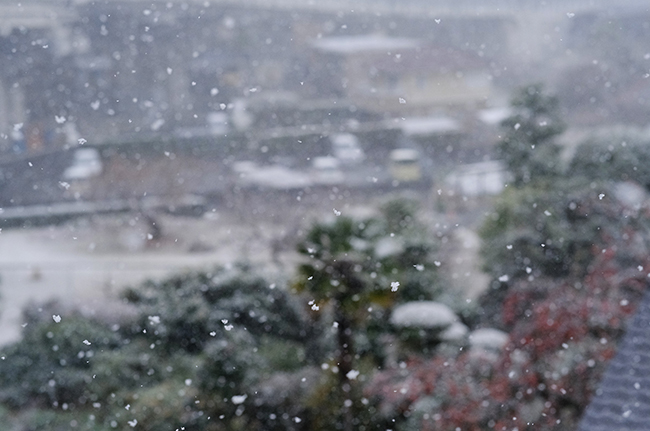 正月に降った時は寒々としていた。