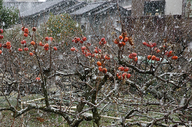 正月の柿と降雪(^O^)