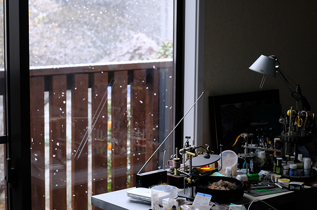そのあと六日には僕の住むエリアでも震度4を記録する地震があり、これはかなり肝を冷やした。二度の横揺れは気持ち悪いものだった。二年前の元旦の能登の地震のこともあるし、なんだか落ち着かない今年の始まり。 それでもあと二ヶ月もしないうちに解禁になるのだが、釣り仲間との話の中で、今年はどこの遊魚券を買おうか、という話題になった。これはかなり悩ましい。 本流、支流、春先、初夏。場所や時期で入る川は変わるが、それぞれの川が今までのようには釣れなくなってきている。二年連続尺上を釣ったのは三年前と四年前だ。それぞれのポイントはもう全く釣れなくなってしまった。 悪くなるばっかりではなく、ぐるっと一周回って良くなった、というポイントは・・・心当たりがないなあ。 今年二度目の雪。冬らしいといえばそうなんだが。