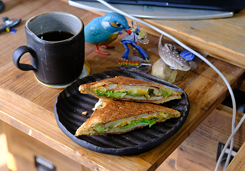 蕗味噌さつま揚げホットサンド。