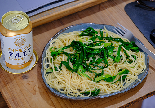 団子なんて作ったことがなく、初めてだったが、だんご粉にみじん切りしたヨモギを混ぜてこねていくといい感じになった。 味の方は鮮度が落ちていたからヨモギらしい香りや味は薄かった。しかしお浸しに醤油漬けに団子と品数もあって我ながらなかなかのものだ。 雨さえ降らなければ、次の週末はタラの芽か、本流ヤマメか。なんだか忙しい週末が続きそうだ。 ヤブカンンゾウスパゲッティ。