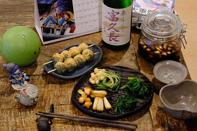 僕は前日の金曜日の夜に、前の週に採った山菜であれこれ作って日本酒のアテにした。 ヤブカンゾウ、アサツキ、ノビルをお浸しに。ノビルの鱗茎とヤマラッキョウを生姜醤油漬けに。 六日経っているのでお浸しはどれももう一つと言ったところだ。山菜も美味しく頂くには採りたてが一番ということか。 醤油漬けは辛味が尖っていて、まろやかさが欲しい。 ![]() ![]() ![]() ![]()